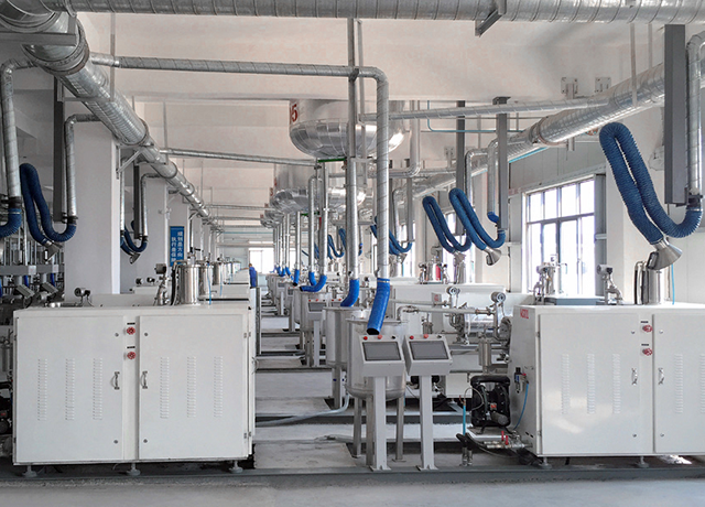 高效研磨新型盤式研磨結構,在研磨轉子高速運轉中,物料和研磨介質的混合物發(fā)生高效相對運動,物料固體顆粒被有效分散、剪切研磨,經動態(tài)大流量轉子縫隙分離過濾器后,得到最終產品。 |