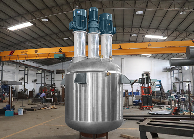 多功能強力分散攪拌釜由帶刮壁式攪拌器和高速分散器組成,兩組攪拌器同時作業使物料收到強烈的剪切,混合作用,達到快速混合的目的。攪拌器一般分為錨式和碟式兩種,針對不同粘度、比重的物料和不同生產工藝要求可以合理設計攪拌形式。