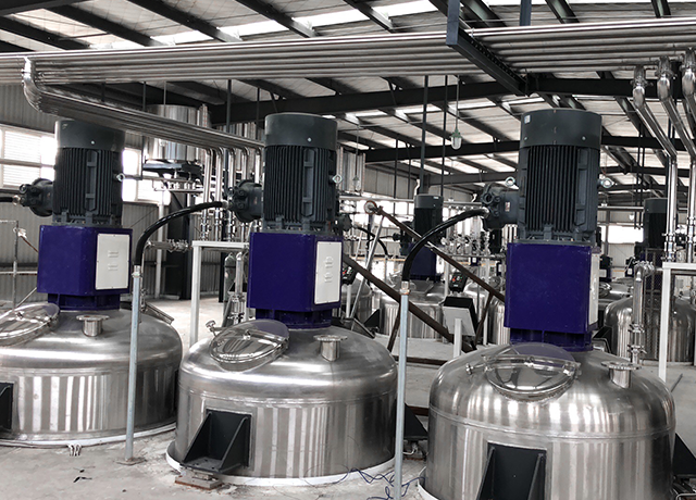 配置高速分散、乳化攪拌釜可根據(jù)需要配置1或2個高速分散機、乳化機,分散機、乳化設備最高轉速可達2930rpm(常規(guī)1450rpm),線速度20m/s以上,能夠快速的將粉料均勻分散到液料里面;物料由于受到極高的剪切力,分散均勻,形成很好的懸浮效果。 |