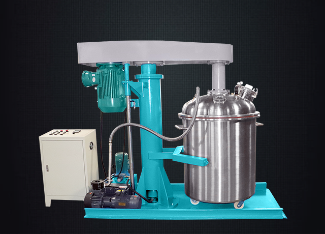 用于多氣泡物料和易揮發性溶劑較多的工藝中,通過抽真空使物料在真空中的容器內分散,減少氣泡和溶劑的揮發,通過真空狀態的分散可以加速物料的分散細度,使物料迅速脫泡。整機設計結構簡單、真空度高、操作方便,適用廣泛。