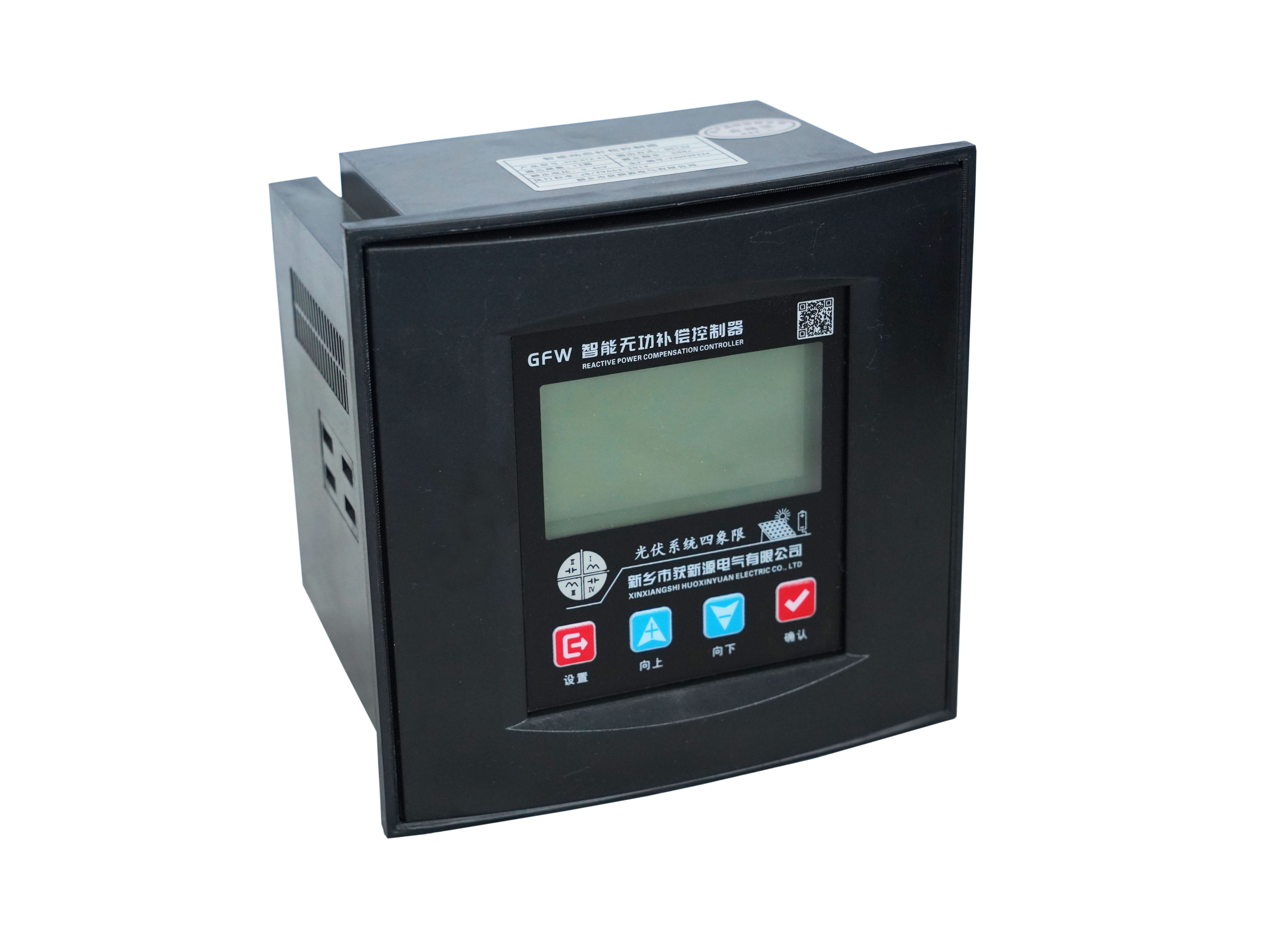 可實時顯示電網功率因數、電壓、電流、有功/無功功率、電壓總諧波畸變率、電流總諧波畸變率、頻率、電容器投、切狀態和故障報警狀態。