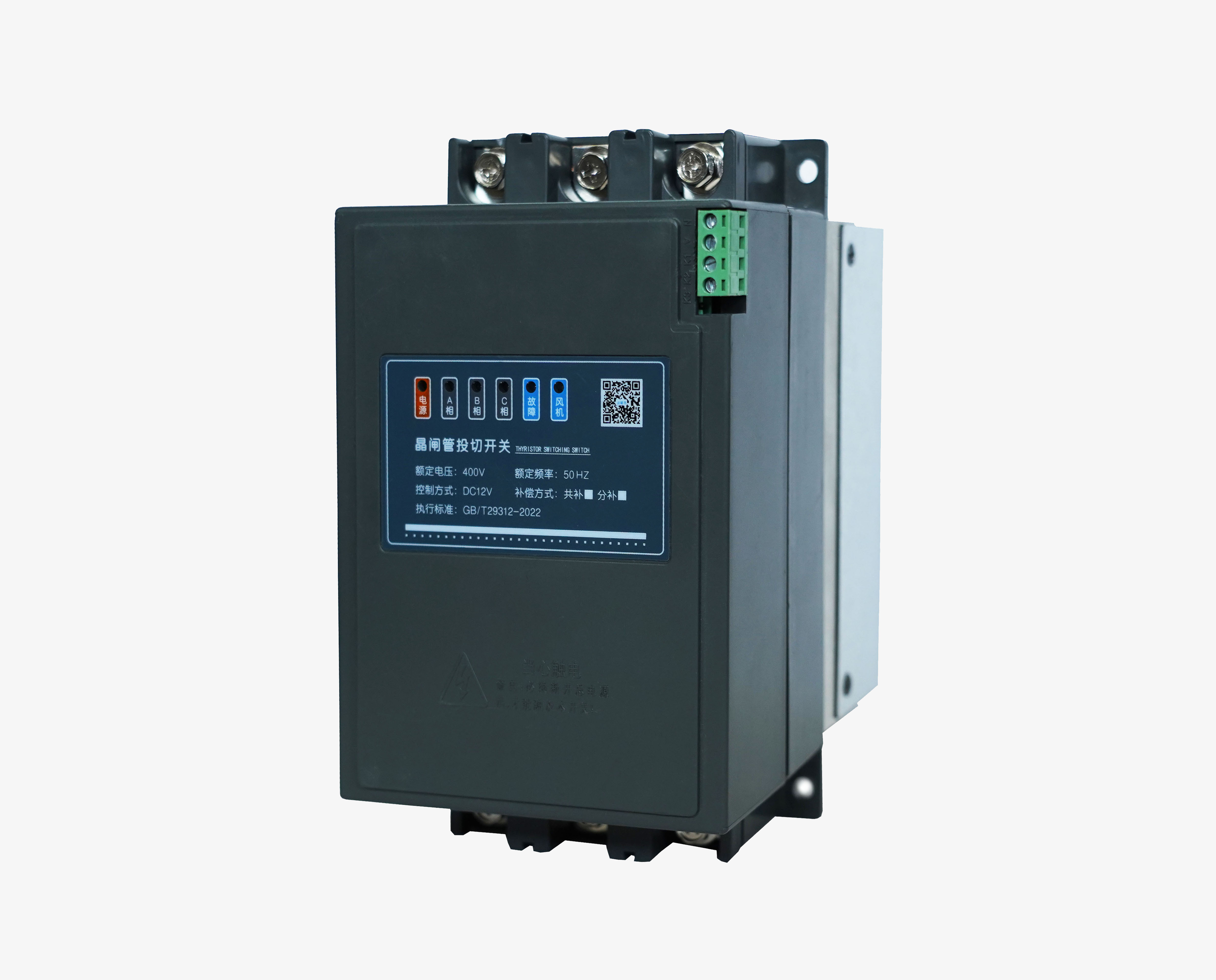 動(dòng)態(tài)無(wú)觸點(diǎn)投切開(kāi)關(guān)是一種智能化的無(wú)機(jī)械觸點(diǎn)的電子開(kāi)關(guān),由反并聯(lián)晶閘管模塊,觸發(fā)集成電路、大功率散熱器、風(fēng)機(jī)等電子器件組成。